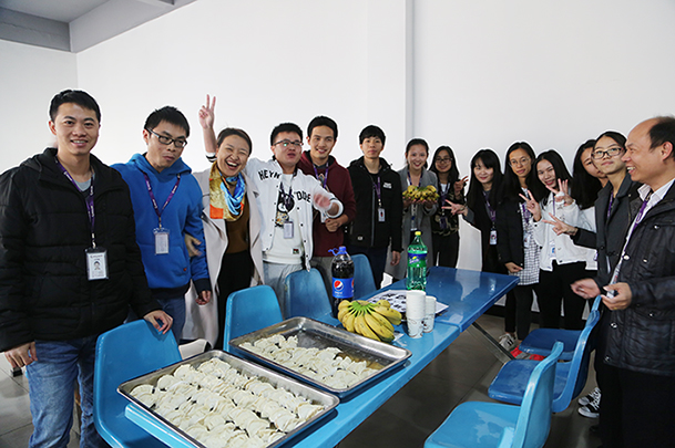 當天下午三點開始準備活動,在市場部的協(xié)助下,大家分工行動,從布置餐廳,到打掃衛(wèi)生都在井然有序的進行著。同時,食堂的廚師們也在為我們的活動忙碌著,經(jīng)過一個小時的時間,他們?yōu)榛顒訙蕚浜昧司虏?、香菇、玉米等餃子餡。在一切準備就緒之后,4點半,大家懷著期待而激動的心情來到了餐廳,為了給大家一個驚喜,還特地為大家準備了小禮物,并有專門人員在餐廳門口為每個人送上新年禮物。